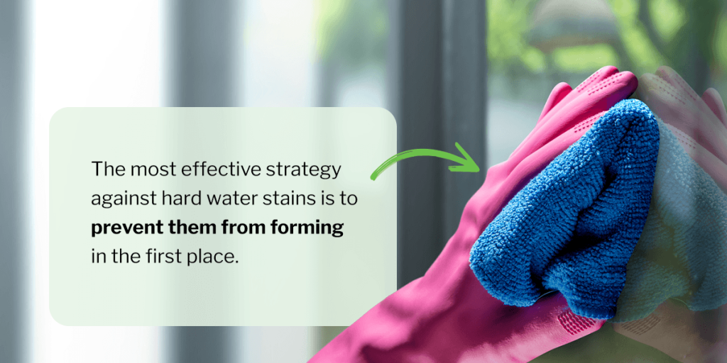 The most effective strategy against hard water stains is to prevent them from forming in the first place. Prevention saves you significant time and effort in the long run and involves: