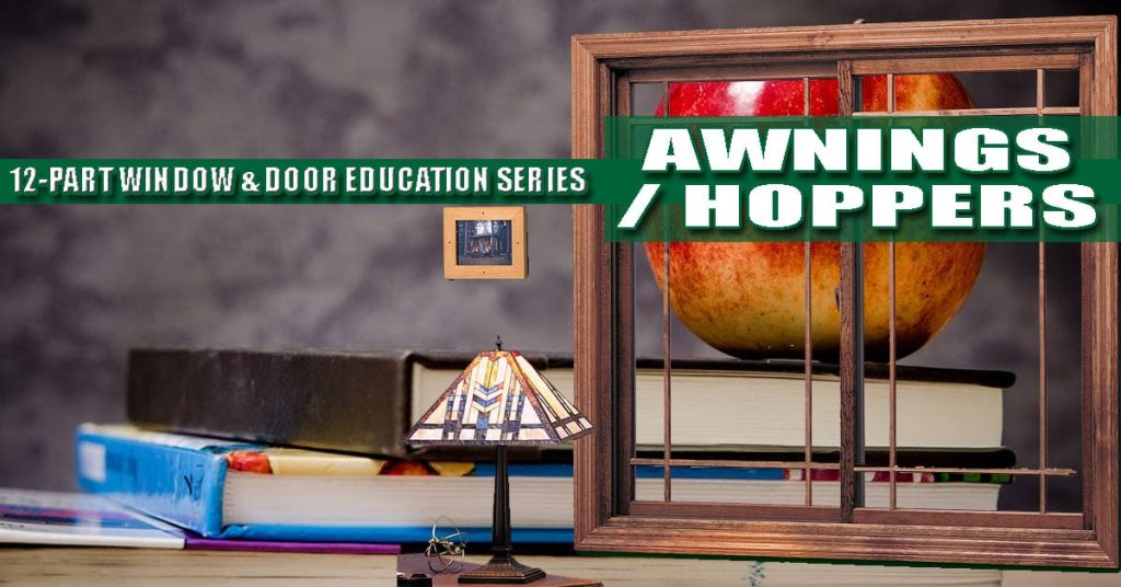 While both replacement window styles are popular as accent windows and in tight spaces, there are a few important differences between them. Let’s start with the construction. Awning replacement windows are hinged at the top, and the sash swings outward. Hoppers are hinged at the bottom, allowing the sash to pull inward. You often see both styles installed high on a wall in narrow hallways, basements and small bathrooms where extra ventilation is important to maintain healthy air quality.